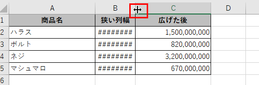 ・######(シャープ)の解消:列の境界線をダブルクリックして列幅を自動調整する