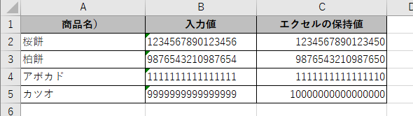 文字列として扱えば15桁の制限を受けることなく、入力した値がそのまま保持されます。