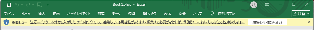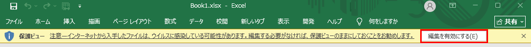 ファイルを開いた時に、画面上部に黄色または赤いバーが表示されているか確認しましょう。