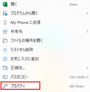 ファイルを右クリックして、メニューから「プロパティ」を選択してください。