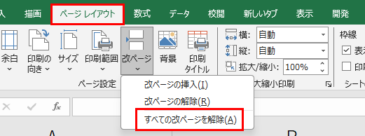 | 4 | 「すべての改ページを削除」を選択 | 手動改ページがすべて削除される |