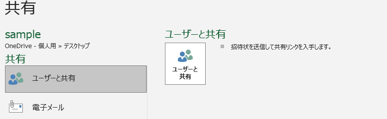 以下のサンプルでOneDrive共有の種類と解除方法を確認してみましょう。