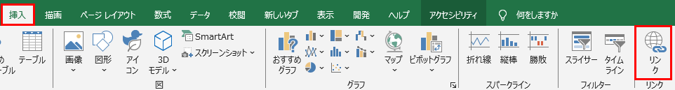 リンクが設定されているセルを選択した状態で「挿入」タブの「リンク」グループにある「リンク」ボタンをクリックします。