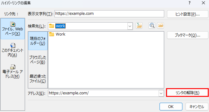 「ハイパーリンクの編集」ダイアログではリンク先のURLや表示テキストを変更することもできるため、削除ではなく修正が必要な場合にも活用できます。