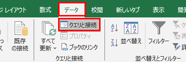 外部リンクを解除するには「データ」タブの「クエリと接続」グループにある「クエリと接続」をクリックします。