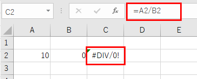 例えば、「=A2/B2」という数式で、B2セルがゼロまたは空白の場合にこのエラーが発生します。