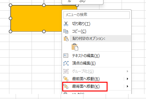 図形を右クリックして、「最背面へ移動」を選択しましょう。