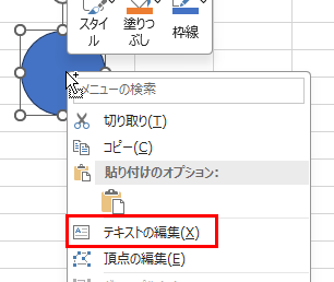 描いた円を右クリックして「テキストの編集」を選択します。