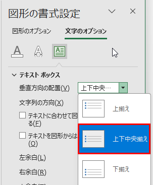 文字を入力したら、円を選択した状態で「図形の書式」タブから文字の配置を「上下中央揃え」に設定することで、円の中心に文字が配置されます。