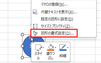 配置したい図形を右クリックして、「図形の書式設定」または「サイズとプロパティ」を選択します。