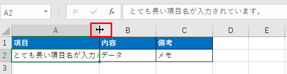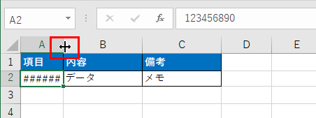 文字が隠れている場合、最も簡単な対処法は列幅を広げることです。