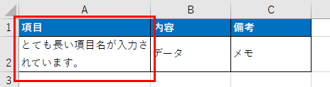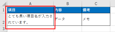 この例では、A列の文字がB列のデータにより隠れてしまっています。