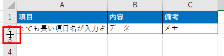 行の境界線をダブルクリックすれば、自動的に最適な高さに調整されます。