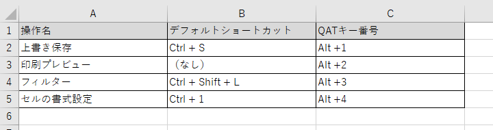 エクセルには数百のショートカットキーが用意されていますが、よく使う機能のショートカットが用意されていない場合や、既存のショートカットが覚えにくいと感じる場合は、クイックアクセスツールバー(QAT)にボタンを追加することで独自のショートカットキーを割り当てる方法が便利です。