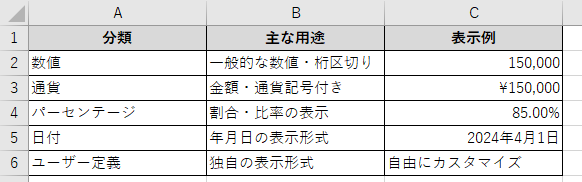 ・通貨形式は「¥」記号と桁区切りが自動で付与される