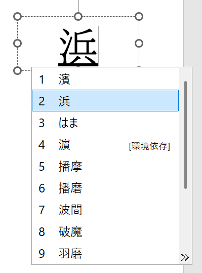 候補の中に旧字体の「濱」が含まれている場合があります。