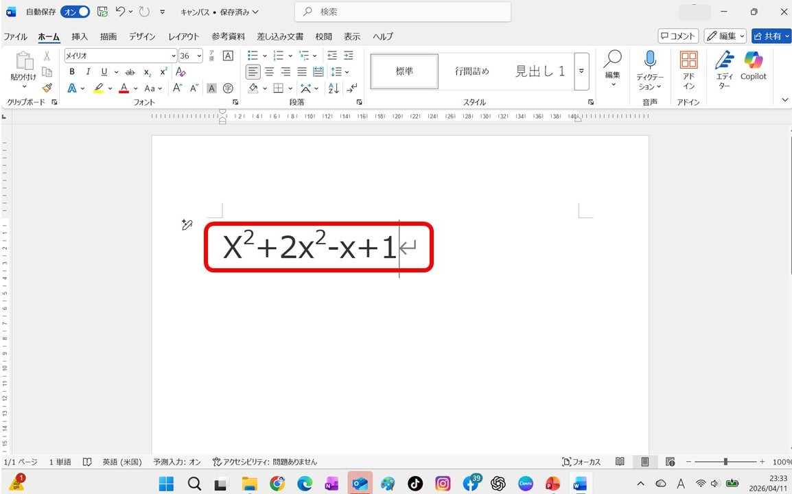 「x³+2x²-x+1」のような多項式も同じ手順で入力でき、数学の教材や学習資料の作成に非常に役立ちます。
