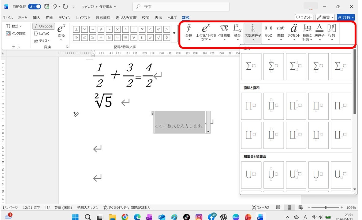 数学記号を打つ方法3【Wordの数式エディタで複雑な数式を入力する】
