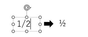 パワーポイントに備わっているオートコレクト機能によって自動的に分数の形に変換されます。