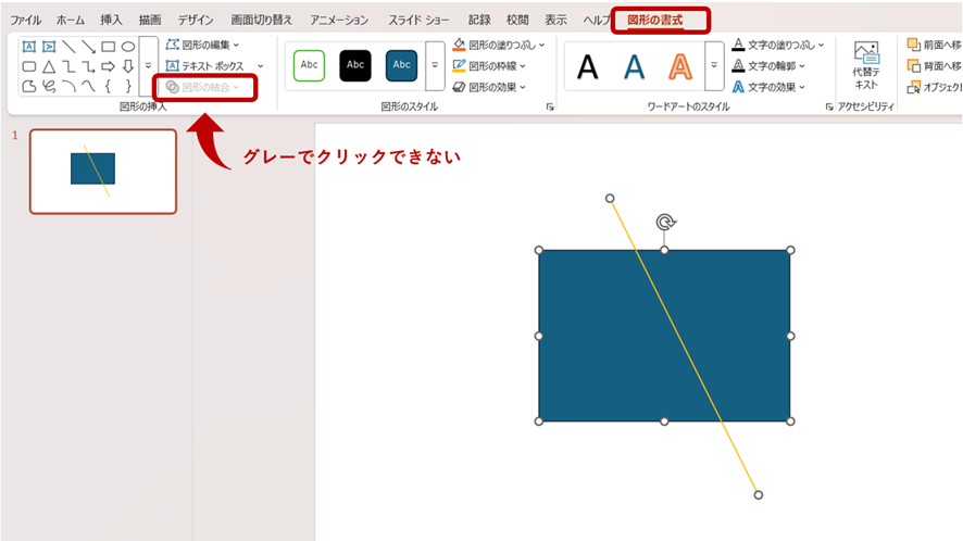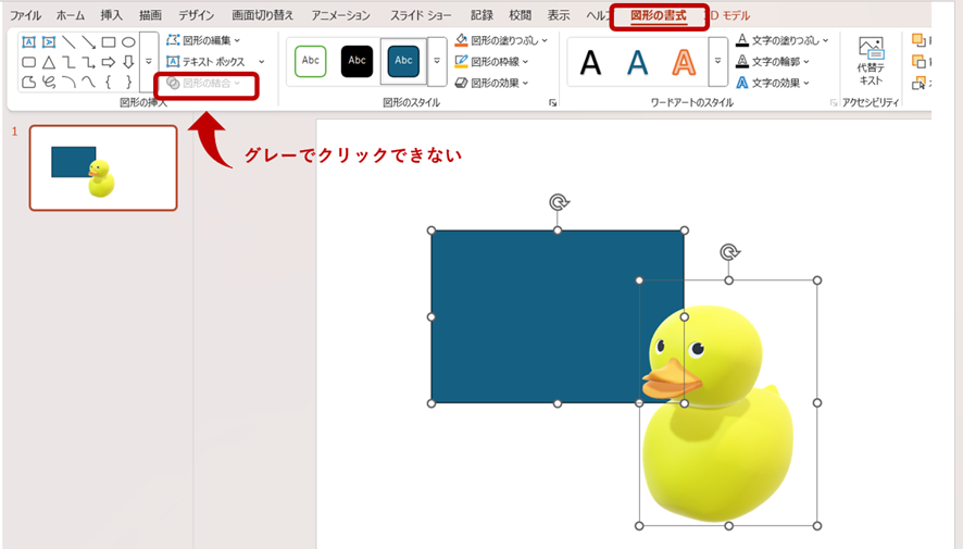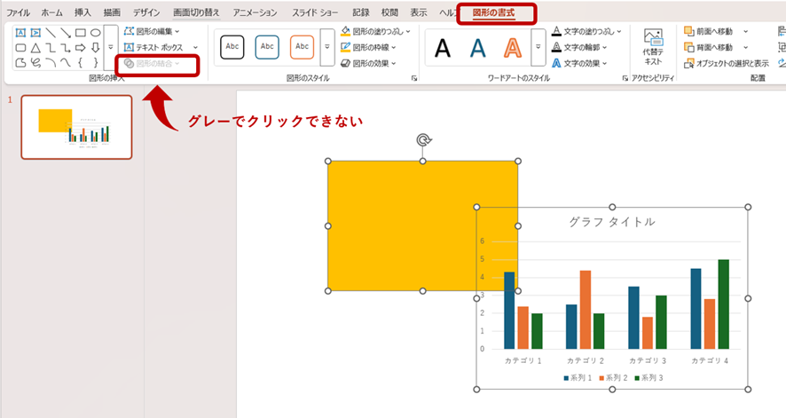 図形とグラフも同様に、[図形の結合]の文字がグレーとなり表示されないことがわかります。