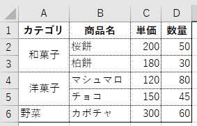 以下のようなサンプルデータを例に考えてみましょう。
