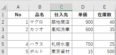 ただしこの方法では空白行も並び替えの対象になるため、空白行が上部や下部に移動することになります。