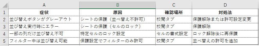 並び替えを完全に許可したい場合はセルのロック設定も合わせて見直す必要があります。