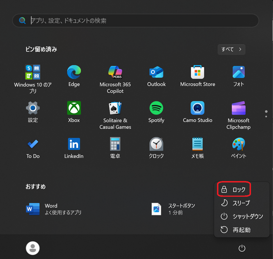 ・ショートカット:「Windowsキー + L」を押すとすぐにロックできます。
