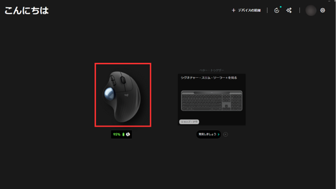 Logi Options+を起動すると、接続されているマウスが自動的に認識されます。