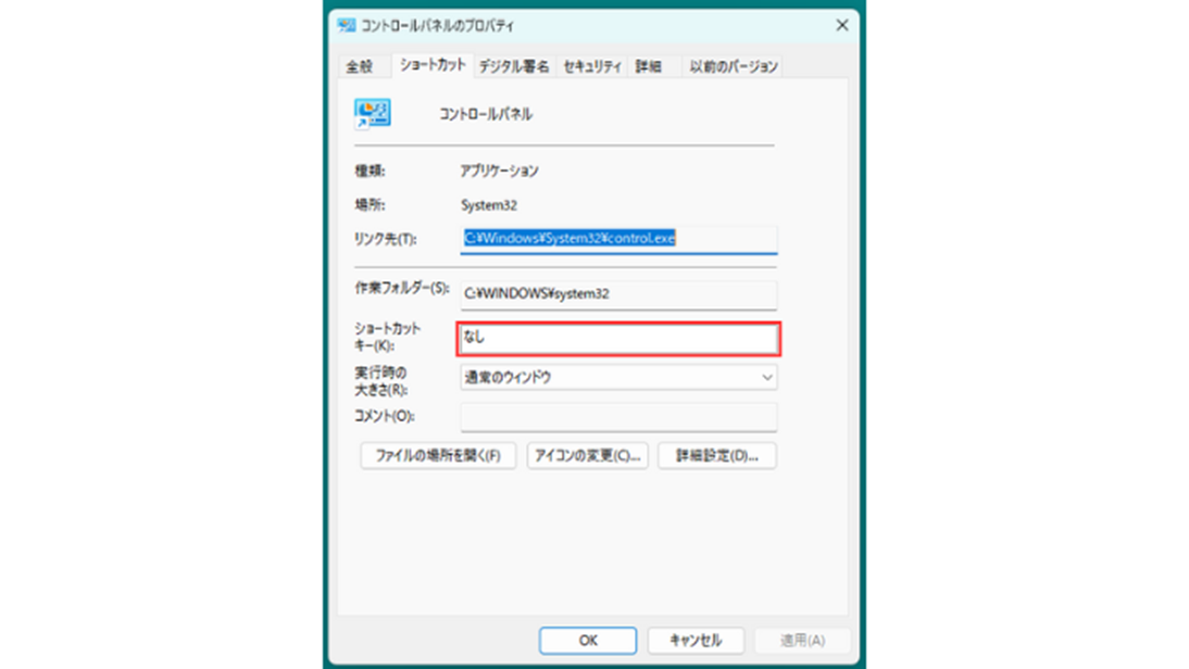 - Windows11のコントロールパネルにショートカットキーを設定する方法
