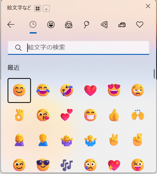 絵文字パネルを開くと最初に「最近使用した絵文字」が表示されます。
