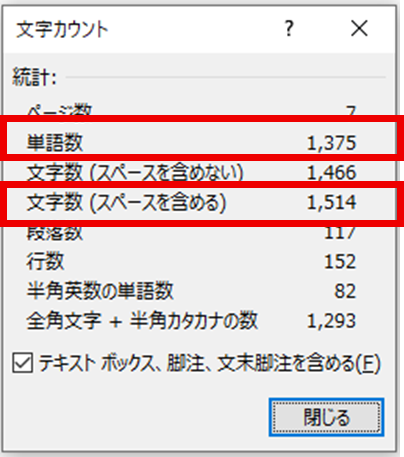 単語数は主に英語の文書をカウントする際に正確な数値が得られます。