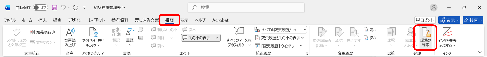 編集制限が設定されていると、文字の入力・削除・書式変更などができなくなります。