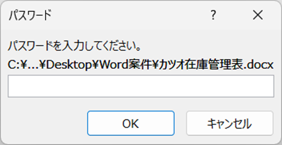 | カツオ在庫管理表.docx | 読み取りパスワード | 開く際にパスワード入力が必要 |
